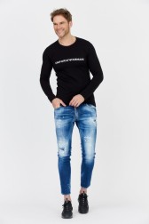 EMPORIO ARMANI Manșon lung negru cu dungi pentru bărbați