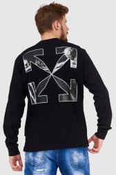 OFF-WHITE Manșon lung negru pentru bărbați cu imprimare pe spate