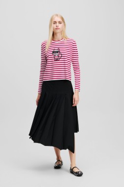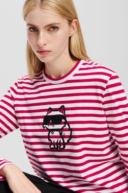Ikon Print Stripe lonsgleeve roșu și alb pentru femei de la Karl Lagerfeld a fost realizat din materiale de înaltă calitate, oferind atât confort, cât și un aspect elegant. Are un imprimeu unic și dungi la modă pentru a adăuga o notă de caracter.