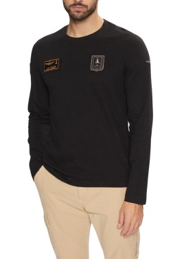 AERONAUTICA MILITARE Black Manșon lung pentru bărbați cu patch-uri