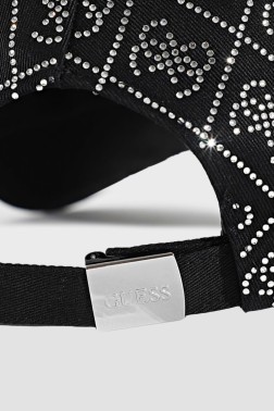 Șapcă de baseball neagră pentru femei, de la Guess, decorată cu zirconii.