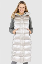 HETREGO Bej strălucitor femei în jos haina cu mâneci detașabile vară