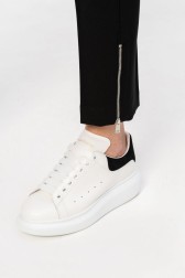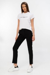 Pantaloni de damă GUESS în negru. Pantaloni din material ușor elastic. Talie joasă, picioare drepte finisate cu fermoare argintii. Două buzunare în față, două buzunare cusute în spate. Fermoar cu fermoar și închidere cu nasturi. Aplicație metalică argintie cu logo pe buzunarul din spate.