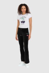 Pantaloni de trening din catifea neagră cu cireșe brodate JUICY COUTURE pentru femei