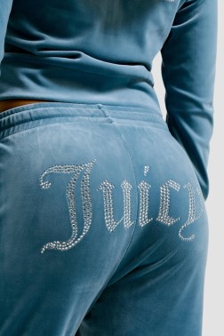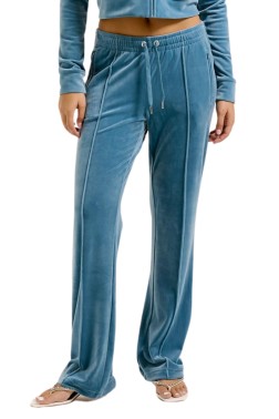 Pantalonii Tina albaștri pentru femei de la Juicy Couture, croiți din catifea de înaltă calitate, combină confortul și designul excepțional.