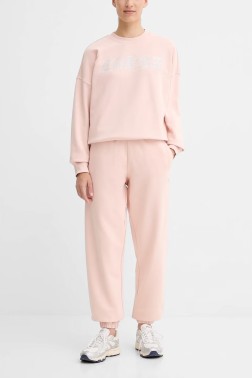 Pantaloni de trening roz Primula, de la Guess.