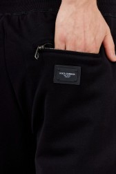 Pantaloni scurți din bumbac DOLCE & GABBANA de culoare neagră. Aplicație logo la spate. Trei buzunare cu fermoar - două în față, unul în spate. Curea cu cordon în talie finisată cu capete metalice.