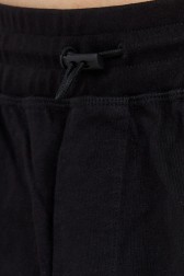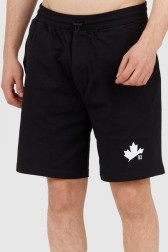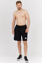 Pantaloni scurți bărbătești din bumbac de culoare neagră cu logo-ul frunzei alb. Două buzunare pe părțile laterale. Talie elastică cu cordon suplimentar.