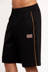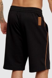 EA7 Pantaloni scurți bărbătești negri din bumbac cu bordură portocalie