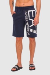EA7 Pantaloni scurți din bumbac albastru marin pentru bărbați, cu logo mare