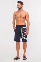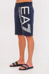 Pantaloni scurți din bumbac EA7 EMPORIO ARMANI în albastru marin. Logo mare în alb pe piciorul stâng. Logo mic alb pe spate. Două buzunare pe părțile laterale. Talie cu bandă elastică și cordon suplimentar cu cordon ascuns.