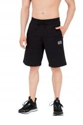 EA7 Pantaloni scurți negri pentru bărbați cu patch-uri