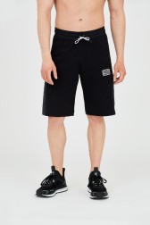 Pantaloni scurți negri pentru bărbați cu inserții și logo mic.