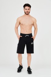 EA7 Pantaloni scurți negri pentru bărbați cu inserții