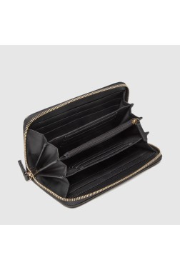 Portofel mare de damă în negru cu logo. În interior 16 sloturi pentru carduri și 6 compartimente pentru bancnote. Buzunar cu fermoar pentru monede.