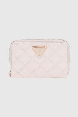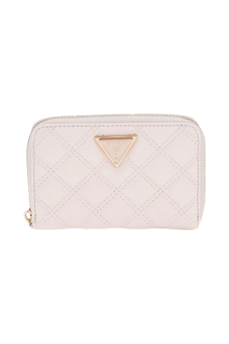 Portofel alb pentru femei de la Guess, realizat din piele ecologică. Cu o închidere cu fermoar, are un buzunar intern pentru monede, două compartimente, patru sloturi pentru carduri și două buzunare glisante.