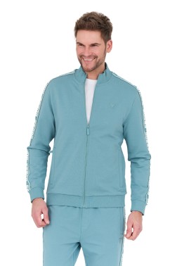 Hanorac cu fermoar complet turcoaz pentru bărbați GUESS