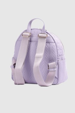 Rucsac mov în relief cu logo-ul VALENTINO. Are două compartimente cu un fermoar dublu. Există două buzunare pe părțile laterale. În interior, un buzunar cu fermoar și un compartiment. Mâner. Bretele reglabile.