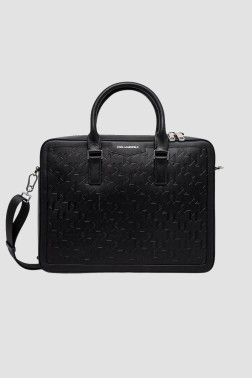 KARL LAGERFELD Servieta din piele cu monogramă neagră pentru bărbați