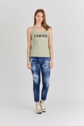 GUESS Top verde deschis pentru femei cu logo cu mărgele