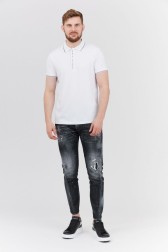 Tricou polo ARMANI EXCHANGE alb pentru bărbați, cu închidere cu fermoar ascuns. Decorat cu un logo negru.