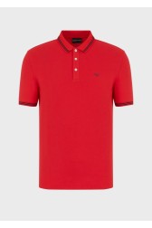 Tricou polo pentru bărbați de la Emporio Armani în roșu. Confecționat dintr-un tricot fin din bumbac cu adaos de elastan. Placă cu trei nasturi cu logo-ul mărcii. Logo-ul mărcii imprimat la piept. Fantă laterală la tiv.