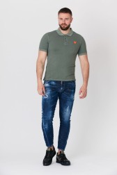 Tricou polo pentru bărbați GUESS Green cu logo portocaliu