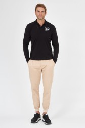 LA MARTINA Polo negru cu mânecă lungă pentru bărbați HEAVY JERSEY