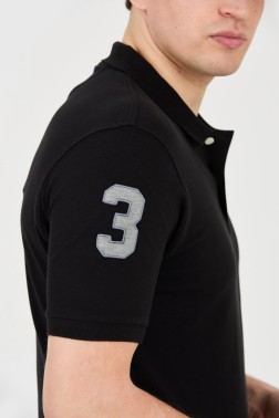 Polo negru pentru bărbați cu logo mic, de La Martina.