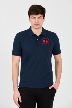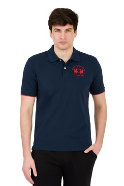 LA MARTINA Polo albastru marin pentru bărbați cu logo roșu mare