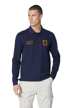 AERONAUTICA MILITARE Polo cu mânecă lungă Piqué albastru marin pentru bărbați