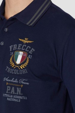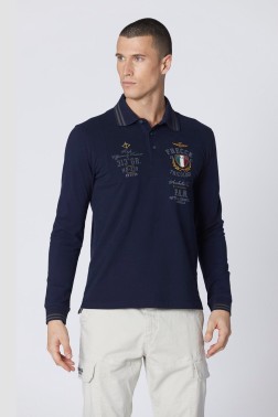 AERONAUTICA MILITARE Polo cu mânecă lungă P.A.N. albastru marin pentru bărbați.