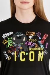 DSQUARED2 Tricou negru pentru femei cu graffiti