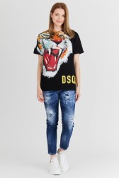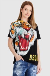 DSQUARED2 Tricou negru pentru femei cu tigru