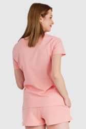 Tricou GUESS pentru femei, de culoarea piersicii, cu logo reflectorizant de culoare.