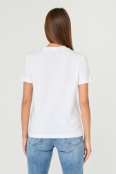 Tricou pentru femei din bumbac R LOGO CRYSTAL de la JUST CAVALLI, cu un logo mare creat cu pietre prețioase. Fabricat din bumbac 100% de înaltă calitate, acesta asigură nu numai confort la purtare, ci și durabilitate.