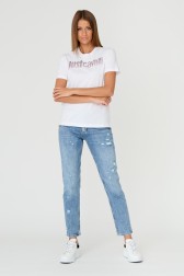 JUST CAVALLI Tricou alb pentru femei R LOGO CRYSTAL