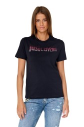 JUST CAVALLI Tricou negru pentru femei R LOGO CRYSTAL