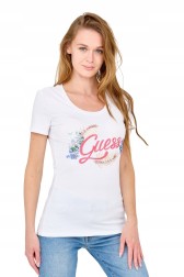 Tricou pentru femei, alb, cu logo mare înfrumusețat.