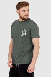 Tricou ARMANI EXCHANGE gri-verde pentru bărbați cu logo brodat