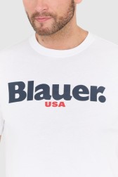 BLAUER Tricou alb pentru bărbați cu logo mare