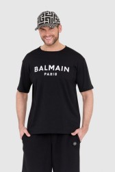 BALMAIN Tricou negru pentru bărbați cu logo imprimat alb