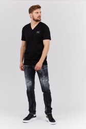 DOLCE & GABBANA Tricou negru pentru bărbați, cu decolteu în V și logo aplicat