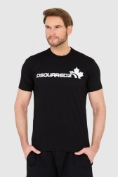 DSQUARED2 Tricou negru din bumbac pentru bărbați cu logo mare