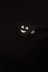 Tricou de bărbați EMPORIO ARMANI de culoare neagră. Aplicație cu emoticon cu velcro pe partea stângă a pieptului, care poate fi înlocuită cu logo-ul clasic al companiei (inclus). Decolteu rotund, cu nervuri.