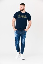 Tricou bărbătesc GUESS în albastru marin. Logo beachwear galben pe față.