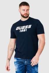 Tricou bărbătesc GUESS în albastru marin. Logo reflectorizant pe față.