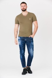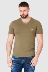Tricou bărbătesc GUESS Khaki cu decolteu în V și elastan