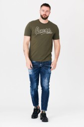 Tricou GUESS pentru bărbați în verde măsliniu. Logo beachwear alb pe față.