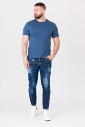 Tricou GUESS albastru pentru bărbați. Logo aplicat în față.